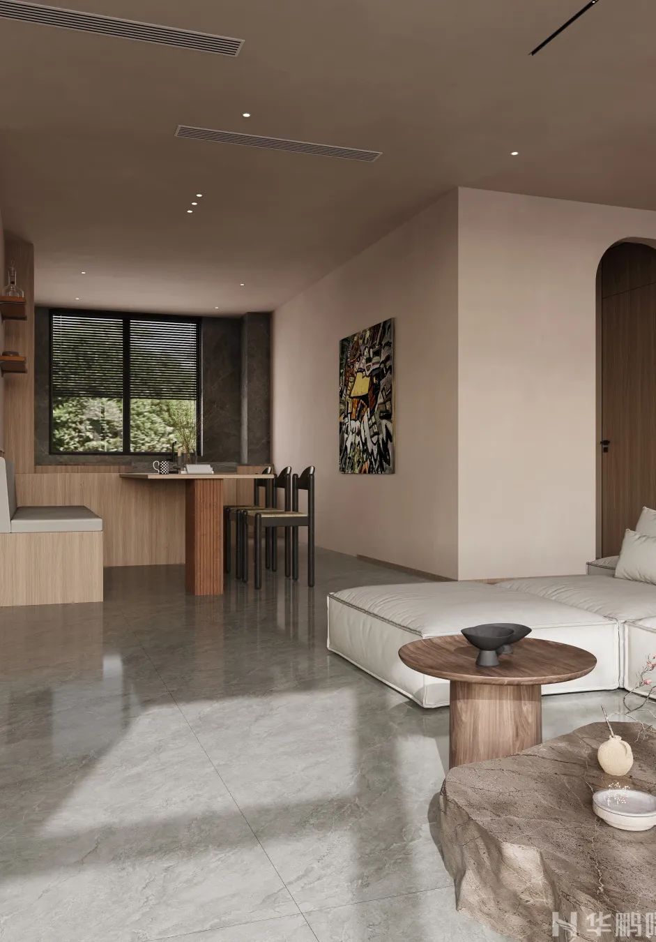 本案業主是一戶三口之家,偏愛現代溫馨的家居風格,希望能引入更多的自然光,打造明亮通透的家居環境。設計師根據需求,選用華鵬陶瓷臻石·通體大理石系列的『幽河暗涌、流沙暖灰』為主材,打造一處舒適而有質感的住所。